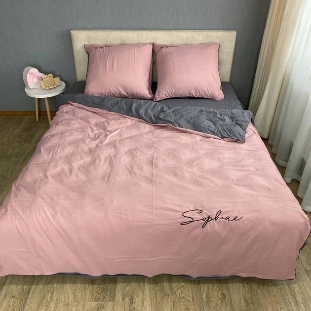 Полуторний комплект постільної білизни Crown 150*220 см сатин рожево-сірий p2696190609