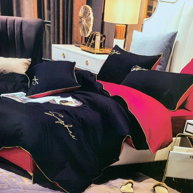 Полуторний комплект постільної білизни Crown 150*220 см сатин червоно-чорний p2696160374