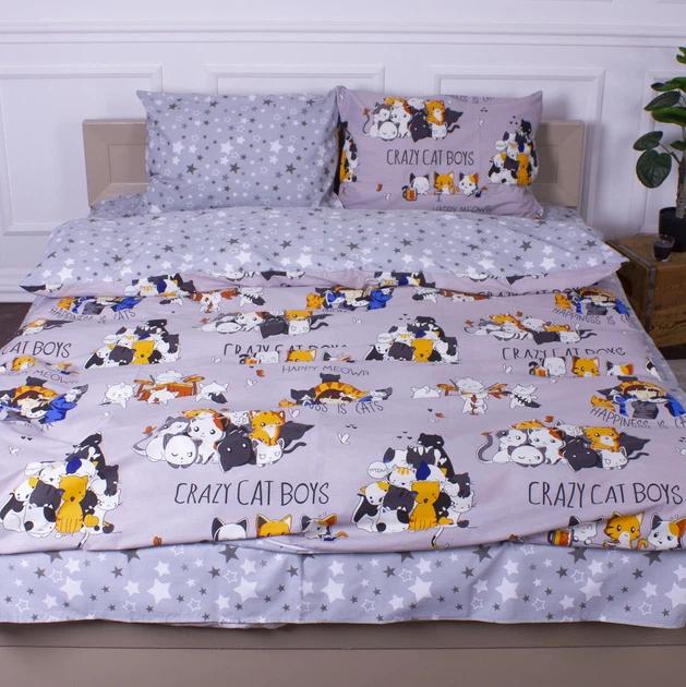 Комплект постільної білизни Бязь Crazy Cat 143х210 см Сірий