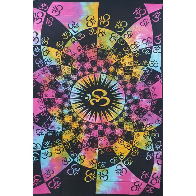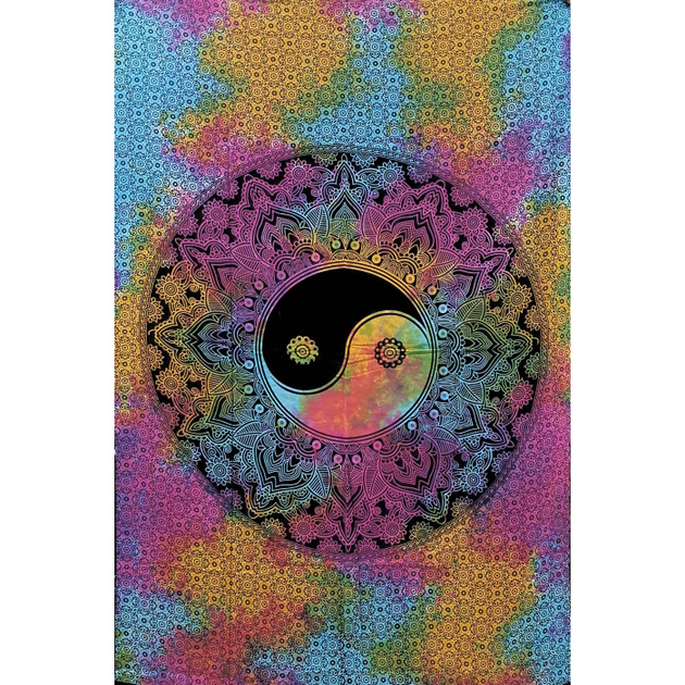 Покривало бавовняне односпальне Мандала кольорова 210х140 см Підстилка на природу пляж для медитації