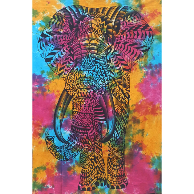 Покривало бавовняне односпальне Слон веселка 210х140 см Підстилка на природу пляж для медитації