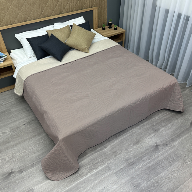 Покривало двостороннє Decorator Microfiber листя 160х215 см капучино з бежевим (85-080)