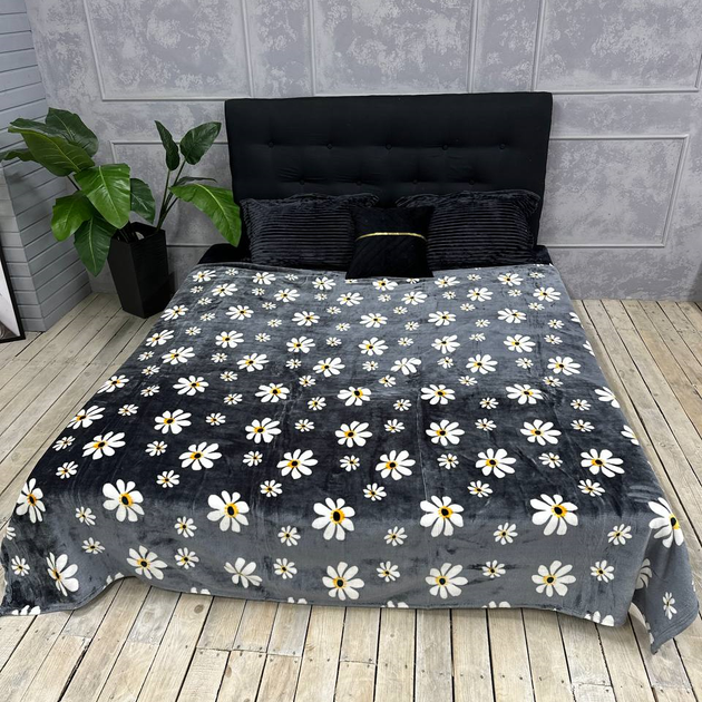 Плед покривало плюшеве Cappone з мікрофібри Ромашки білі 200х220 см