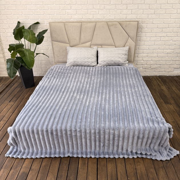 Плед покривало плюшеве Cappone з мікрофібри Смужка 200х220 см Світла Сталь, сірий