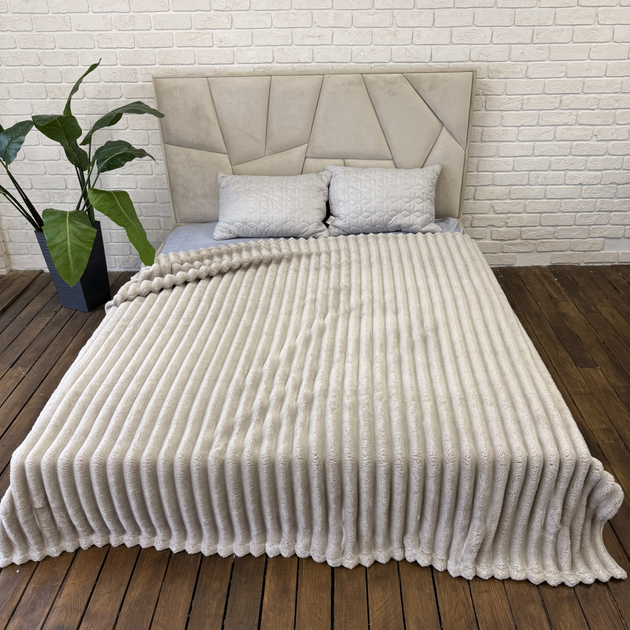 Плед покривало плюшеве Cappone з мікрофібри Смужка 200х220 см Світло-сіра