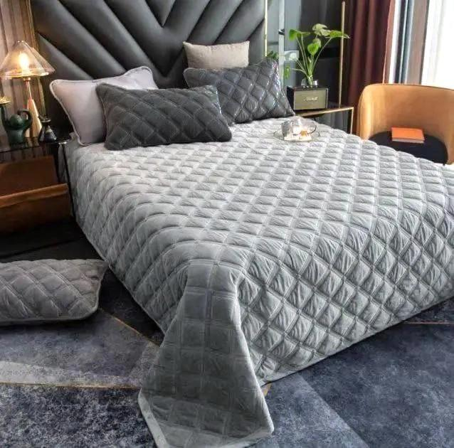 Покривало велюрове стьобане ANTINA Ромб 150х210 Полуторний Світло-сірий