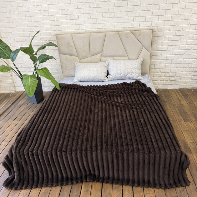 Плед покривало плюшеве Cappone з мікрофібри Смужка 200х220 см Темний Шоколад