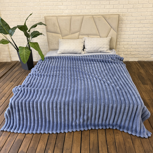 Плед покривало плюшеве Cappone з мікрофібри Смужка 200х220 см Джинсова
