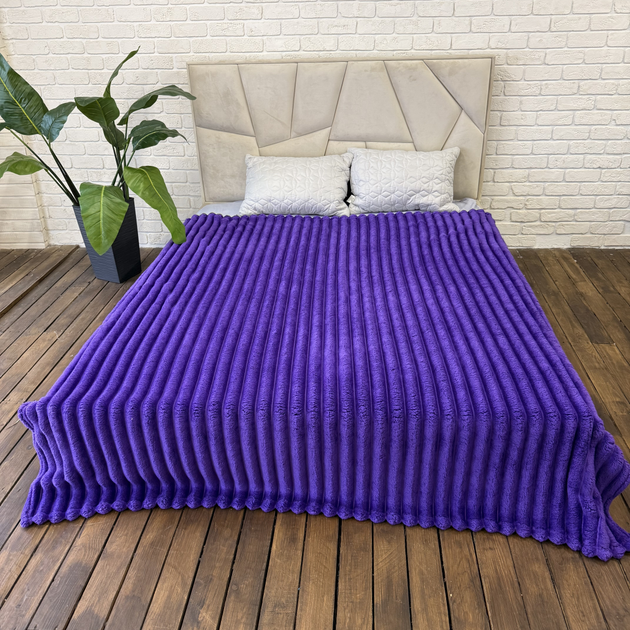 Плед покривало плюшеве Cappone з мікрофібри Смужка 200х220 см Фіолетова
