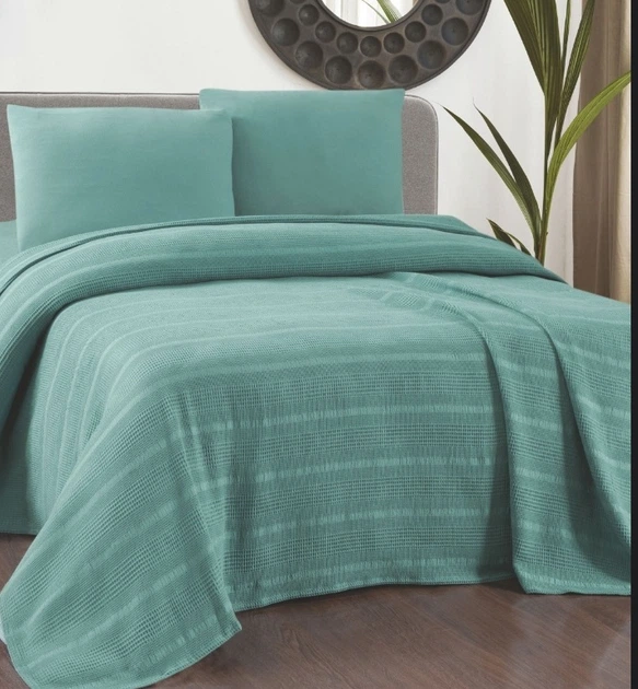 Плед покривало Domikus Pike вафельний 100 бавовна полуторне м'ятне 230х160 см (4829900028862)