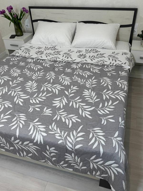 Муслінове літнє покривало плед з натуральної бавовни Листок 150x200 Полуторний Сірий