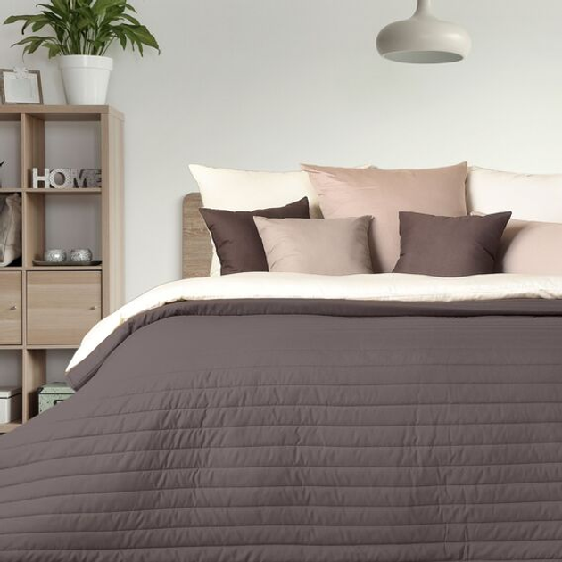 Покривало на ліжко 220х240 см Люкс IDEIA двосторонне, міцна стібка тканини, антиалергенне волокно шоколад/беж