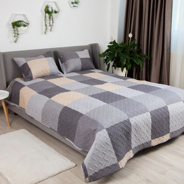 Двостороннє покривало на ліжко 180х210 см з мікрофібри сірий/беж Стиль Cube IDEIA 8-32404*003