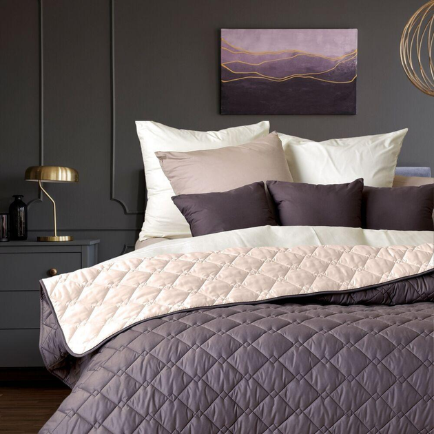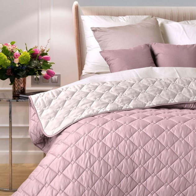 Покривало 180х210 см IDEI стьобане двостороннє якісна стібка мікрофібра пудра сіре на ліжко, диван