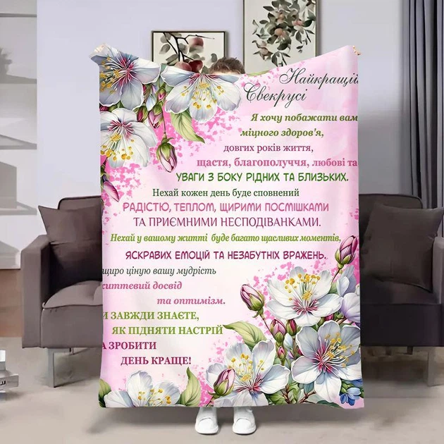Персоналізований плед Свекрусі:Квітуча вишня з 3D малюнком 135х160