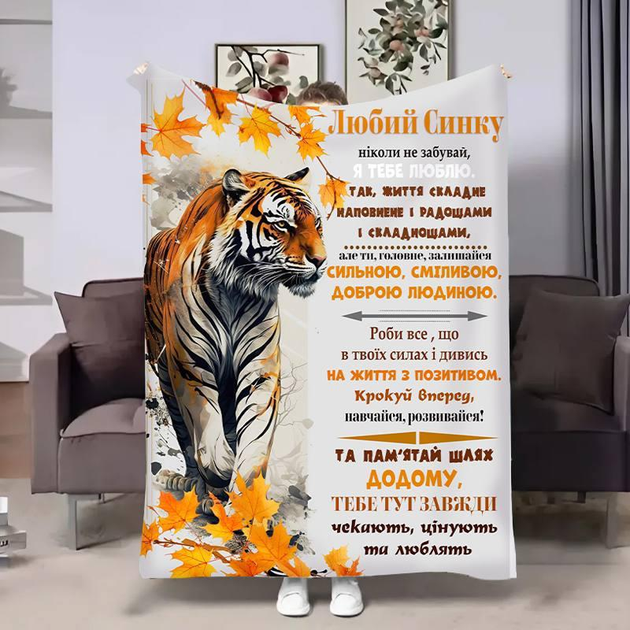 Персоналізований плед Сину:Осінній тигрик з 3D малюнком 135х160