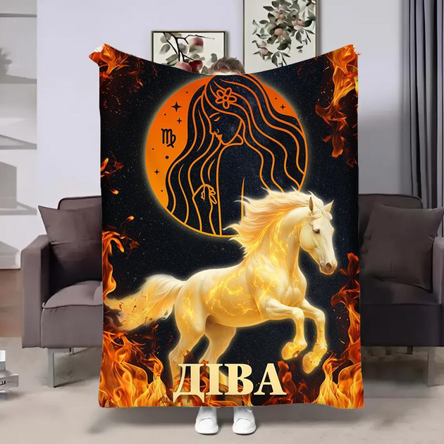 Плед Гороскоп 2026 — Діва, плюшевий велюр, вогненний кінь, знак зодіаку Virgo 135x160