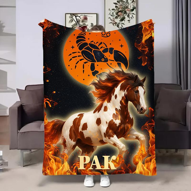 Плед Гороскоп 2026 — Рак, плюшевий велюр, вогненний кінь, знак зодіаку 135x160