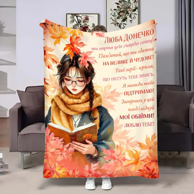 Персоналізований плед Коханій:Осіннє кохання з 3D малюнком розмір 135х160