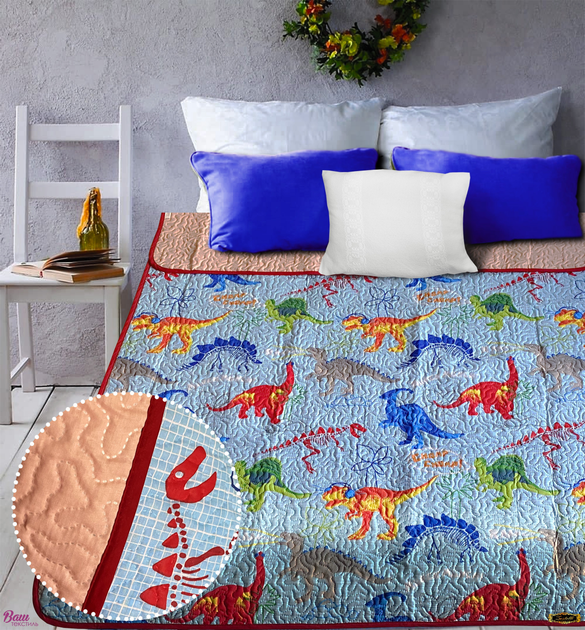 Покривало Zastelli Динозаврики 14638 Pale Blush Блакитне Двоспальне 200х210 см Паяне Бязь (2100000282487)