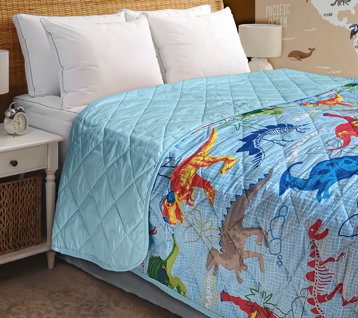 Покривало стьобане Zastelli Динозаврики 14638/12-4608 Clear Water Полуторне 160х210 см бязь (2100000285303)