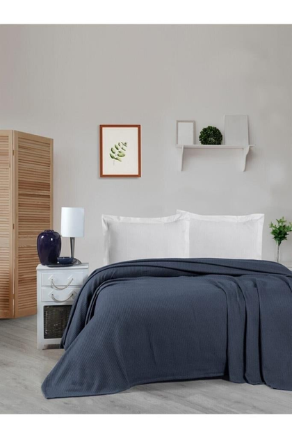 Покривало плетене Bysungur косичка з товстої бавовни 220х240 см Темно-синій