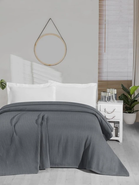 Покривало плетене Bysungur косичка з товстої бавовни 220х240 см Антрацит