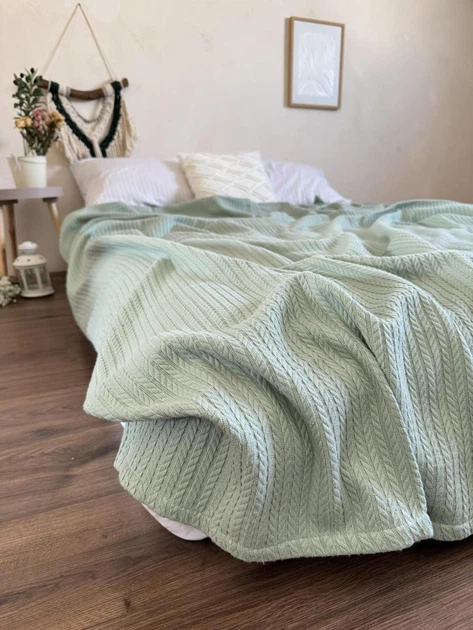 Покривало ZEINTEX Косичка бавовняне світло-бірюзове 120х200 см