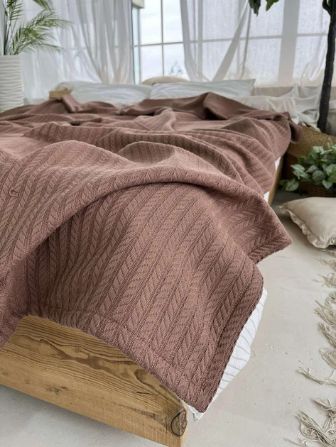 Покривало ZEINTEX Косичка бавовняне коричневе 120х200 см