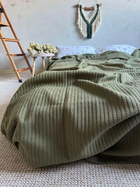 Покривало ZEINTEX Косичка бавовняне хакі 120х200 см