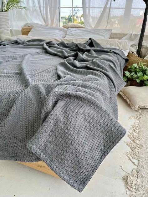 Покривало ZEINTEX Косичка бавовняне темно-сіре 120х200 см