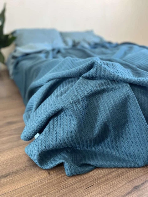 Покривало ZEINTEX Косичка бавовняне бірюзове 120х200 см