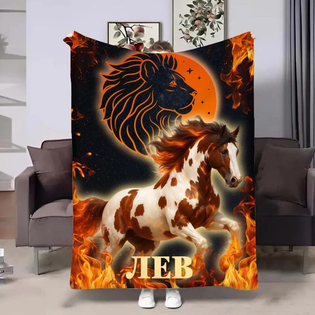 Плед Гороскоп 2026 — Лев, плюшевий велюр, вогненний кінь, знак зодіаку Leo 160x200