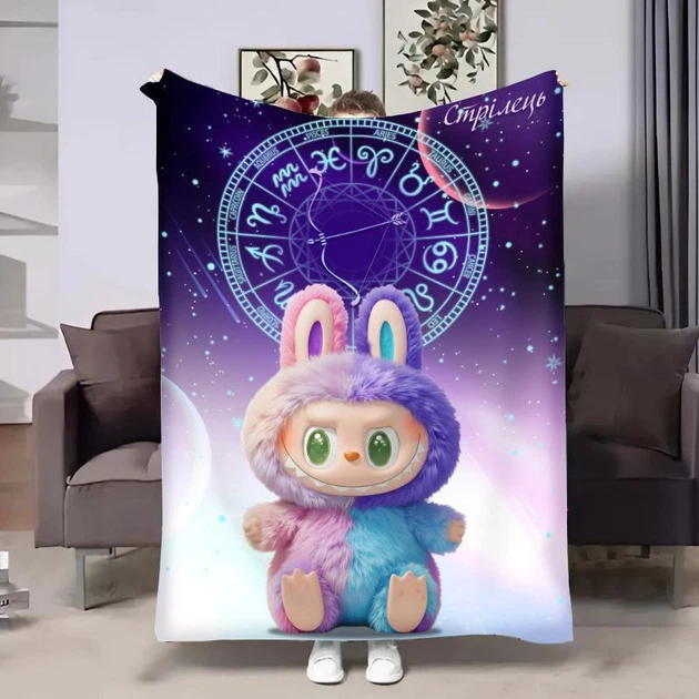 Плед Гороскоп 2026 — Стрілець, плюшевий велюр, Лабубу, знак зодіаку Sagittarius 160x200