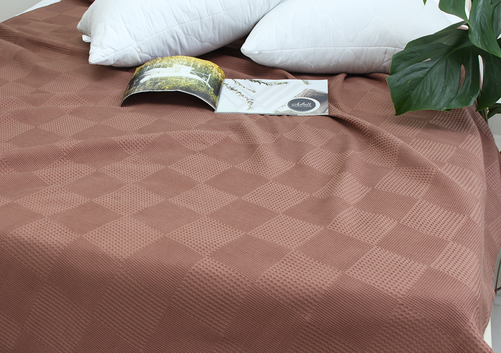 Простирадло-покривало піке 200х235 см. Клітина кавова