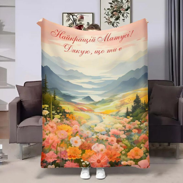 Персоналізований плед Мамі:Весняний пейзаж з 3D малюнком розмір 160х200