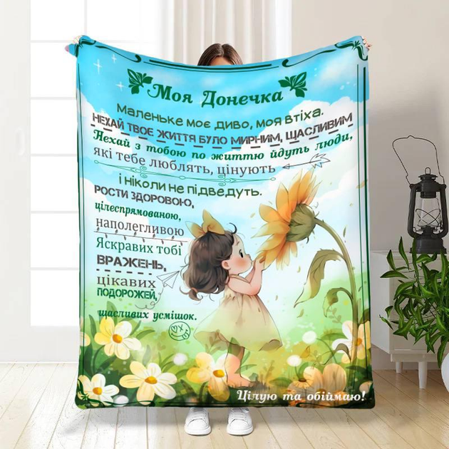 Персоналізований плед Донечка дотики весни з 3D малюнком 160х200