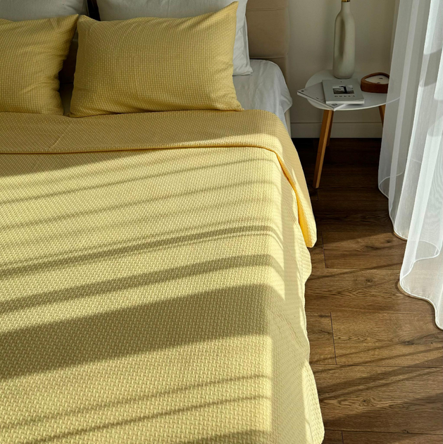 Бавовняний плед покривало LavSon 100 органічна бавовна Бохо Півтораспальний Євро 200х220 Лимонний