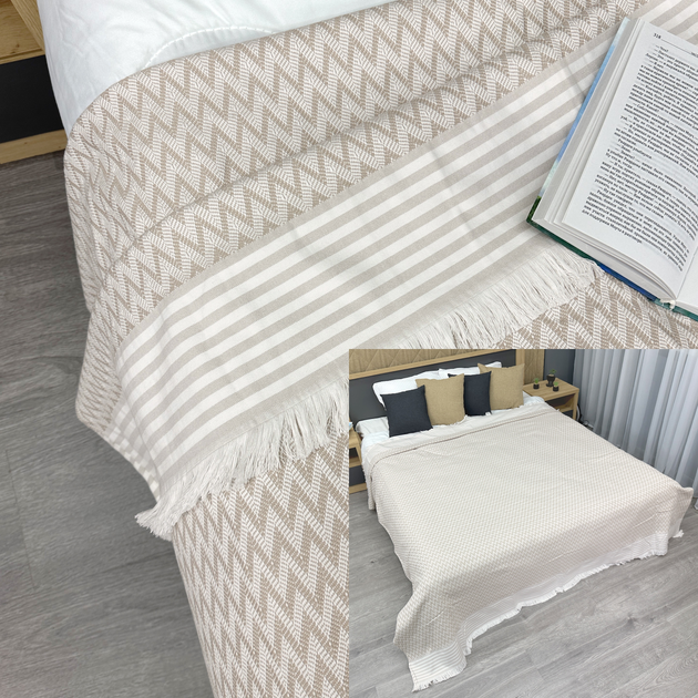 Покривало Dakota Fringe ЄВРО 200х230 см колір бежевий з білим (85-193)