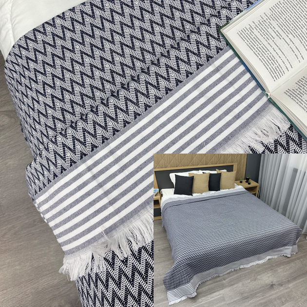 Бавовняний плед покривало LavSon 100 органічна бавовна Бохо Півтораспальний Євро 200х220 Графіт