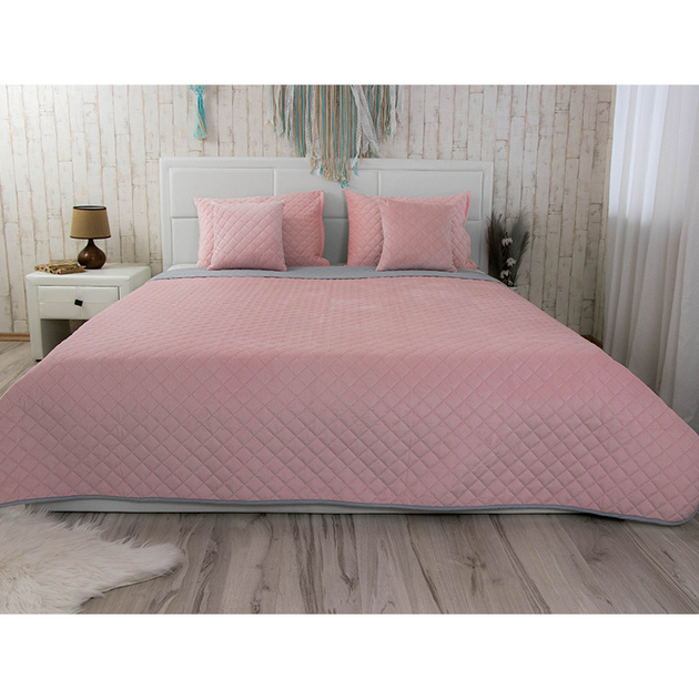 Покривало двостороннє Руно 220x240 см - Велюр Pink and Grey рожевий ромб (28050)
