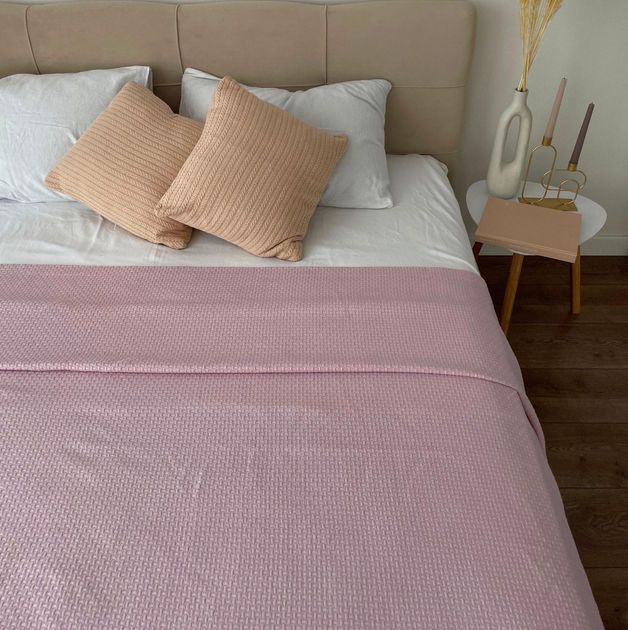 Бавовняний плед покривало LavSon 100 органічна бавовна Бохо Півтораспальний Євро 200х220 Рожевий