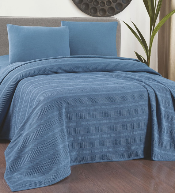 Плед-покривало Zastelli Blue Waffle 200х220 см Вафельний Бавовна (2500001001597)