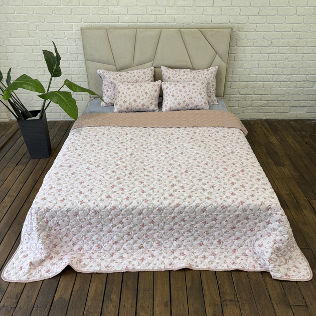 Покривало літнє стьобане Cappone Ніжна Елегія рожева, 220х240 см + 2 подушки 40х60 см та 2 наволочки 50х70 см