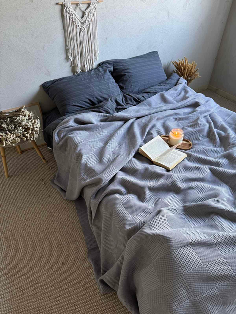 Покривало ZEINTEX Greece вафельне бавовняне темно-сіре 160х210 см