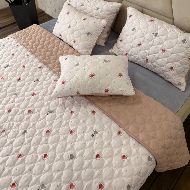 Покривало літнє стьобане Cappone Ніжність Сердець, 220х240 см + 2 подушки 40х60 см та 2 наволочки 50х70 см