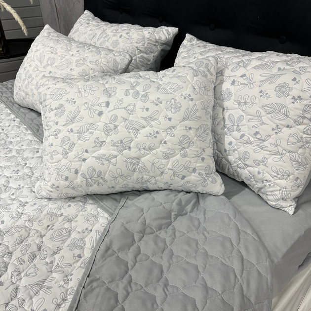 Покривало літнє стьобане Cappone Тополя, сіре, 220х240 см + 2 подушки 40х60 см та 2 наволочки 50х70 см