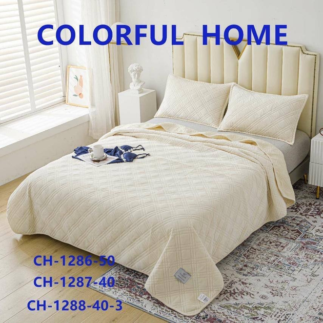 Комплект покривало Premium CH 200х220 см + 2 наволочки 50*70 із геометричним малюнком молочного кольору (KCH0013)