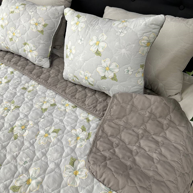 Покривало літнє стьобане Cappone Квіткова Симфонія 220х240 см + 2 подушки 40х60 см і 2 наволочки 50х70 см, сіро-бузкове