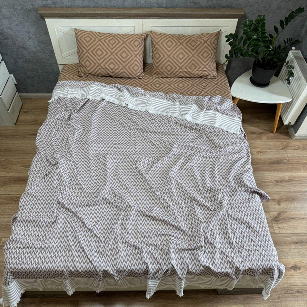 Бавовняний плед покривало LavSon 100 органічна бавовна Бохо Двоспальний 220х220 Шоколад